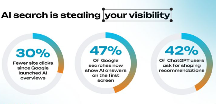 In fact, research shows that 47% of Google searches now show AI-generated results on the first screen, and 42% of ChatGPT users ask for shopping or brand recommendations.
